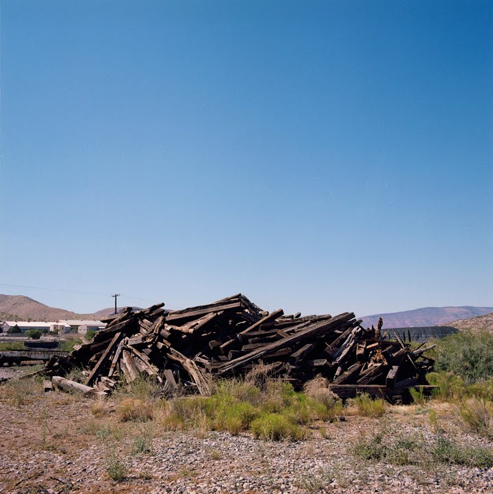 Railroad tie's piled up near the Clarkdale, AZ. train station.